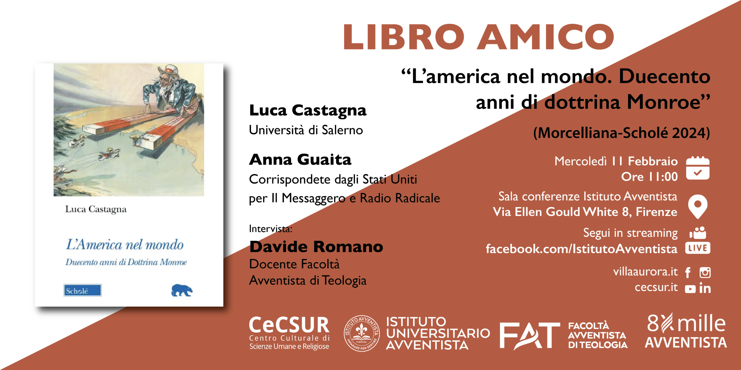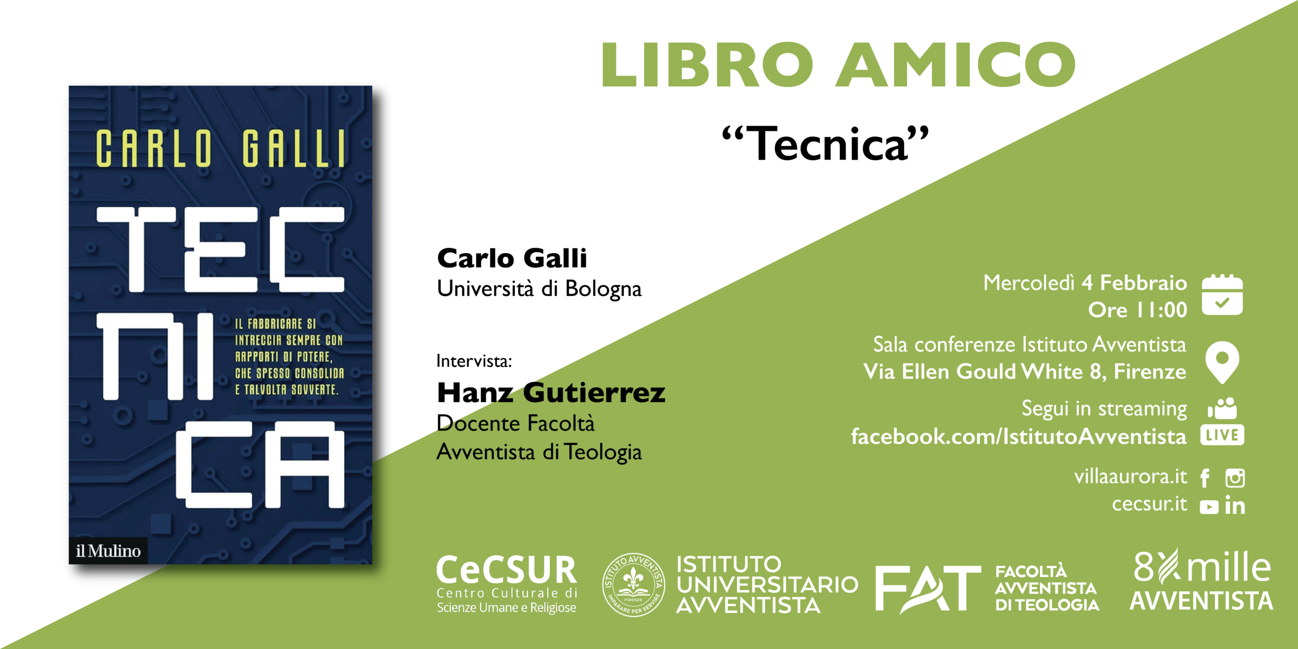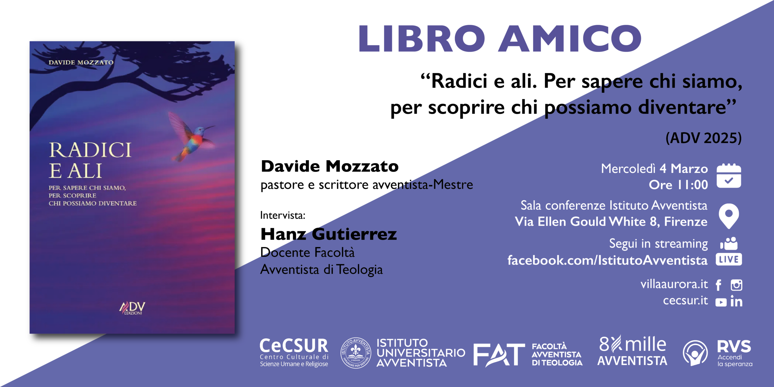 Mercoledì 4 febbraio, alle ore 11:00, l’Istituto universitario avventista di Firenze ospiterà un nuovo appuntamento di Libro Amico, il ciclo di incontri dedicato al dialogo