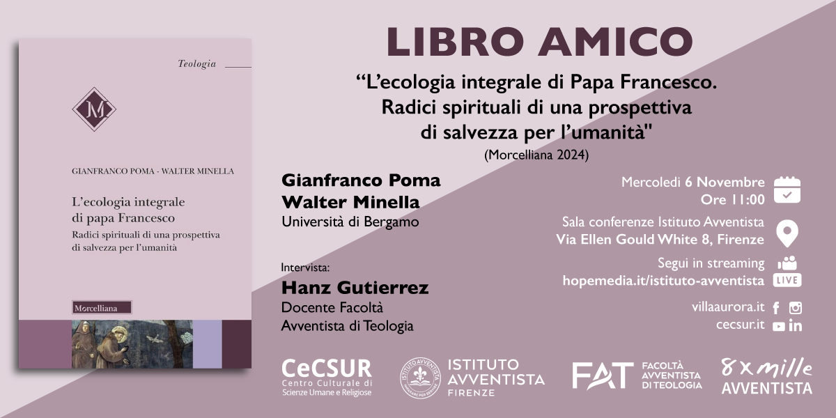 Mercoledì 6 novembre, alle ore 11:00, si terrà un nuovo appuntamento della serie “Libro Amico”, dedicato alla presentazione del libro “L’ecologia integrale di Papa Francesco.