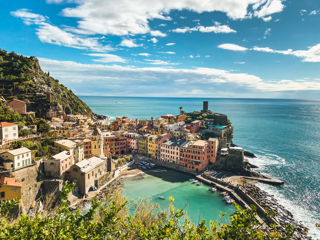 By train, you can arrive at the first of the 5 villages: Riomaggiore. Then by following the Via dell’Amore you can reach Manarola on foot before going on to explore Corniglia, Vernazza and Monterosso al Mare. Be sure to bring your swimsuit as there is nothing more refreshing than jumping in the sparkling sea in between hiking. As you will surely work up an appetite, some local specialties to try include olive oil, focaccia, pesto, and farinata, a savory snack made from chickpea flour.