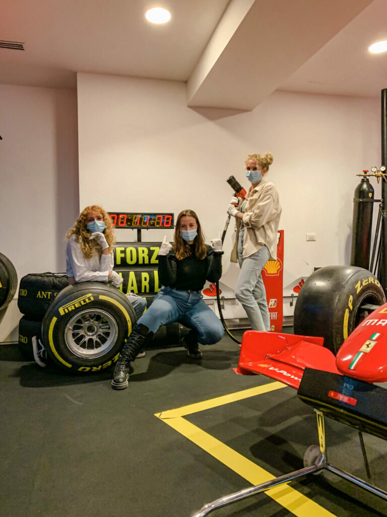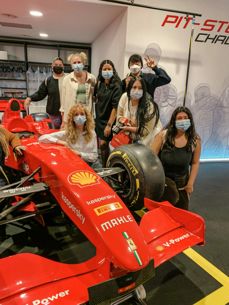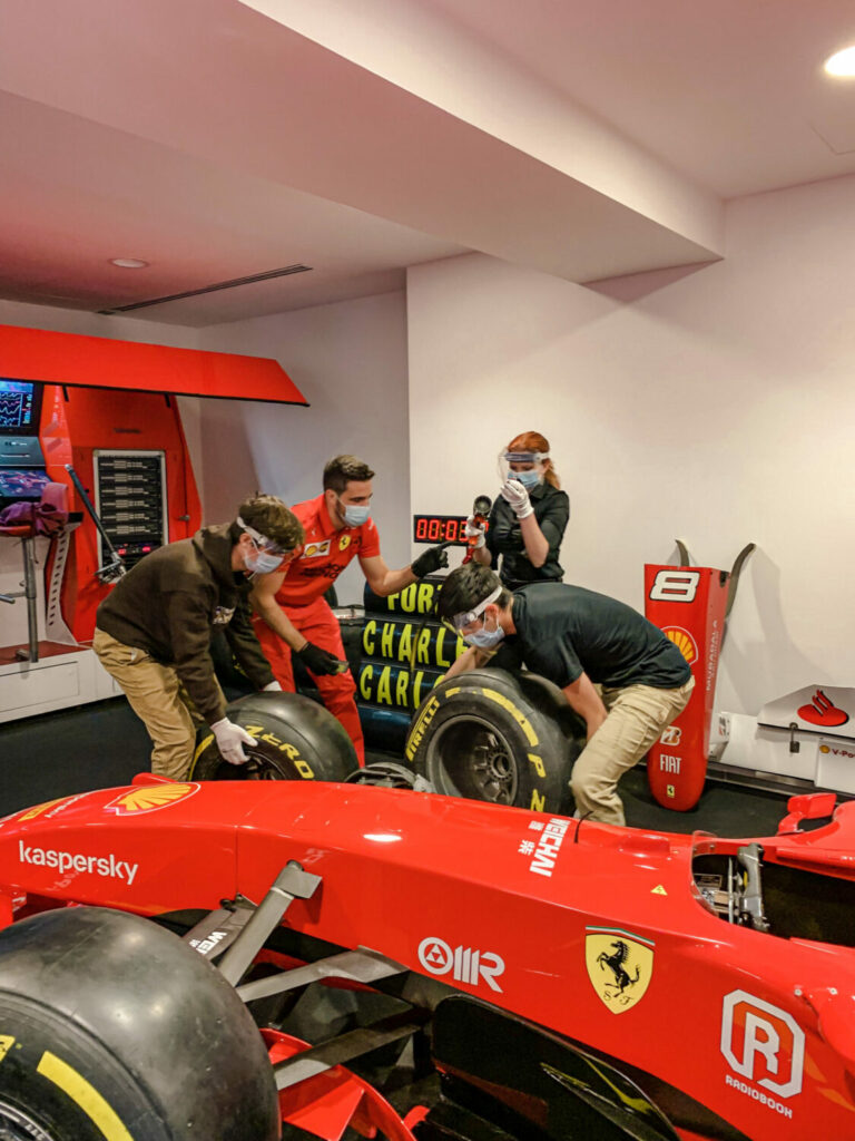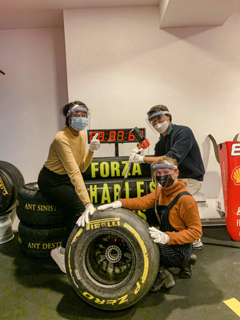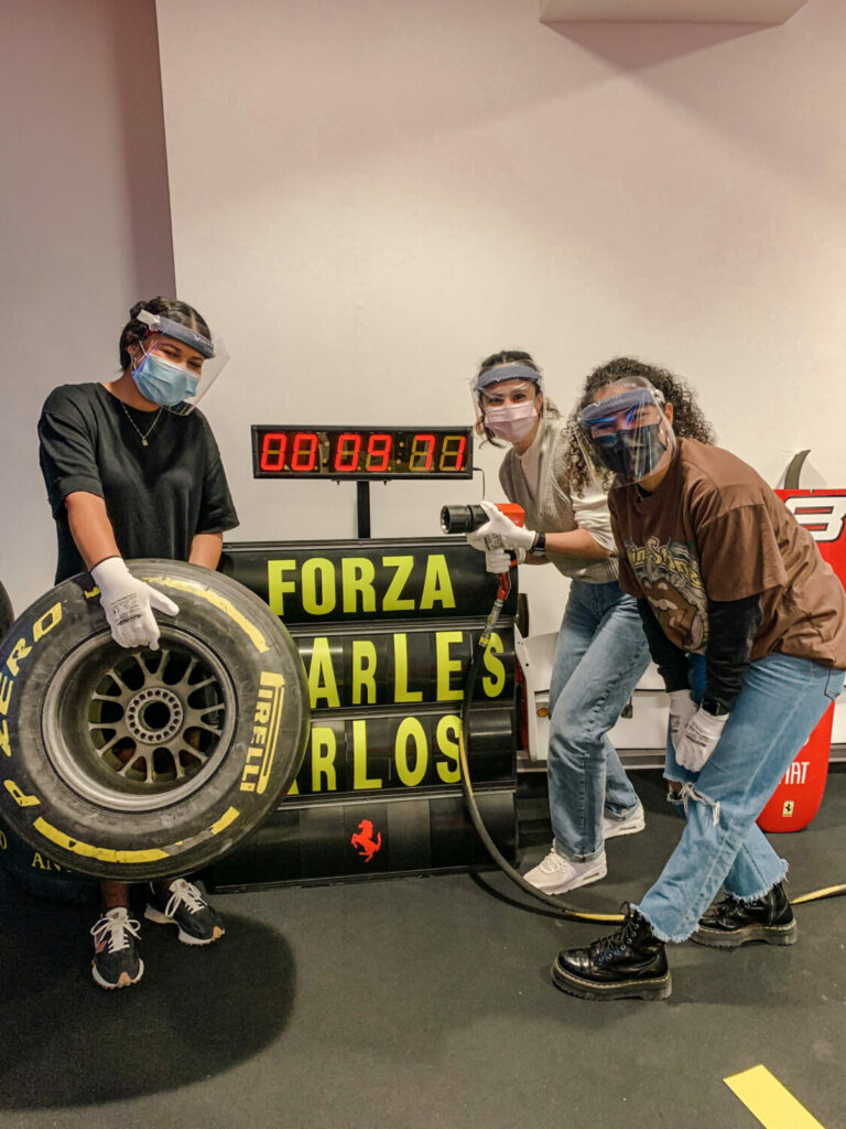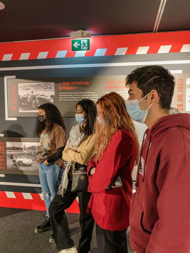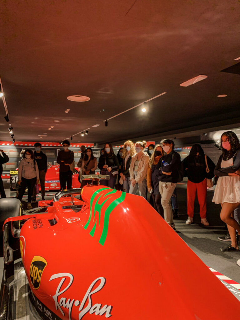 Durante il nostro viaggio a Modena, abbiamo avuto l’opportunità di visitare il Museo Ferrari. Grazie a una visita guidata, abbiamo potuto ammirare i famosi modelli di auto che sono stati utilizzati nel corso degli anni. Oltre all’incredibile storia legata a queste auto, la nostra guida ci ha anche raccontato approfondimenti su Enzo Ferrari e aneddoti divertenti su di lui. Ad esempio, era, ed è tuttora, vietato che i modelli Ferrari autentici fossero rosa! L’ultima sala del museo era una sala dei trofei che esponeva un semicerchio di Ferrari da corsa e foto giganti di tutti i vincitori di Formula Uno che le hanno guidate. Il tour si è concluso con l’opportunità di andare in gruppi di tre e simulare un pit stop, il cambio gomme, che avviene durante una gara. Ci siamo sfidati tutti per vedere chi fosse il più veloce, ma sfortunatamente nessuno di noi si è nemmeno avvicinato al record di 1,97 secondi, nonostante i nostri continui tentativi.