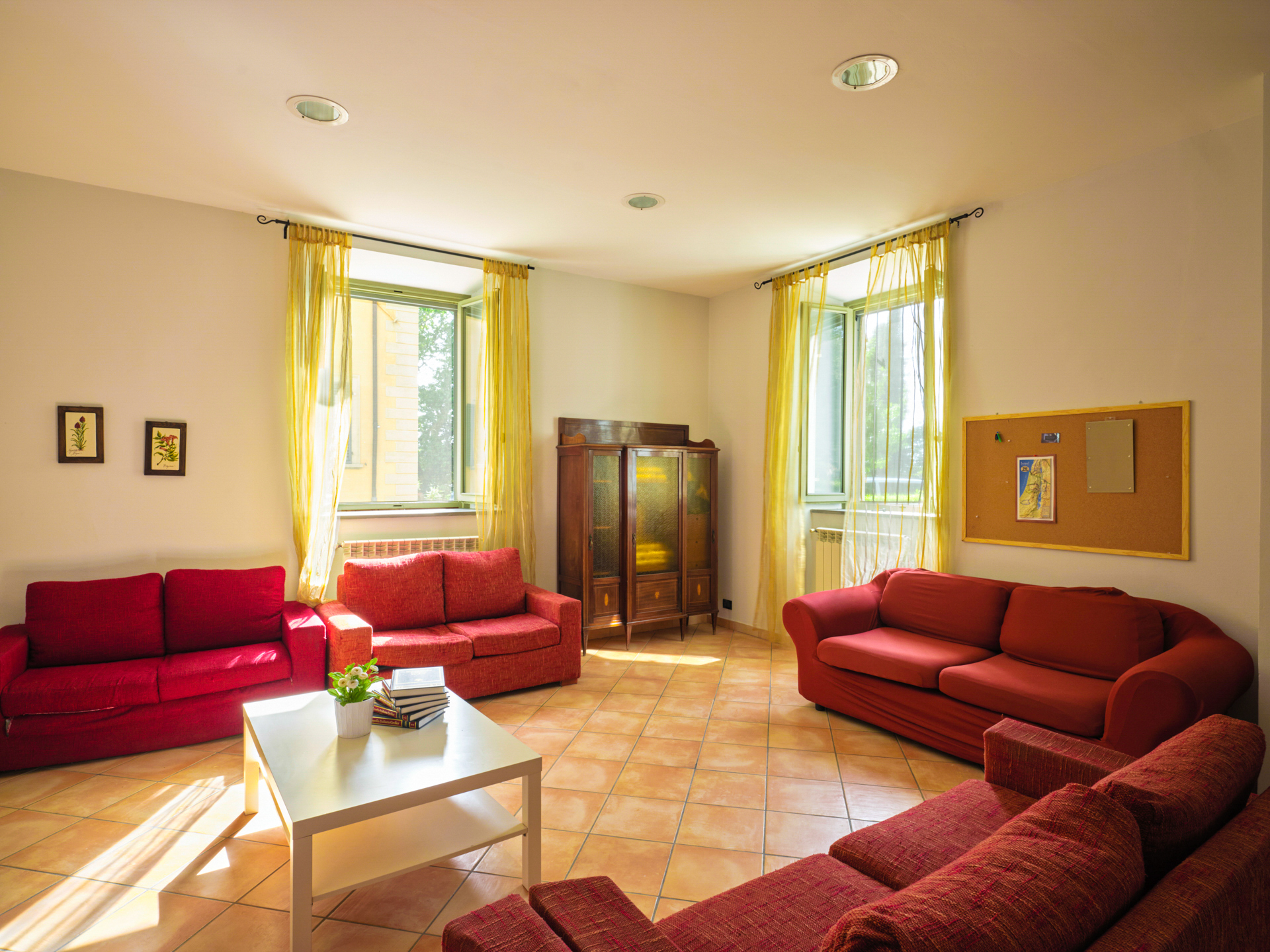 Situato nello storico edificio di Via del Pergolino 12, il convitto maschile offre un ambiente accogliente e funzionale. La struttura dispone di diverse camere con bagno, alcuni mini-appartamenti indipendenti e un confortevole salottino TV, pensato per l’uso comune.