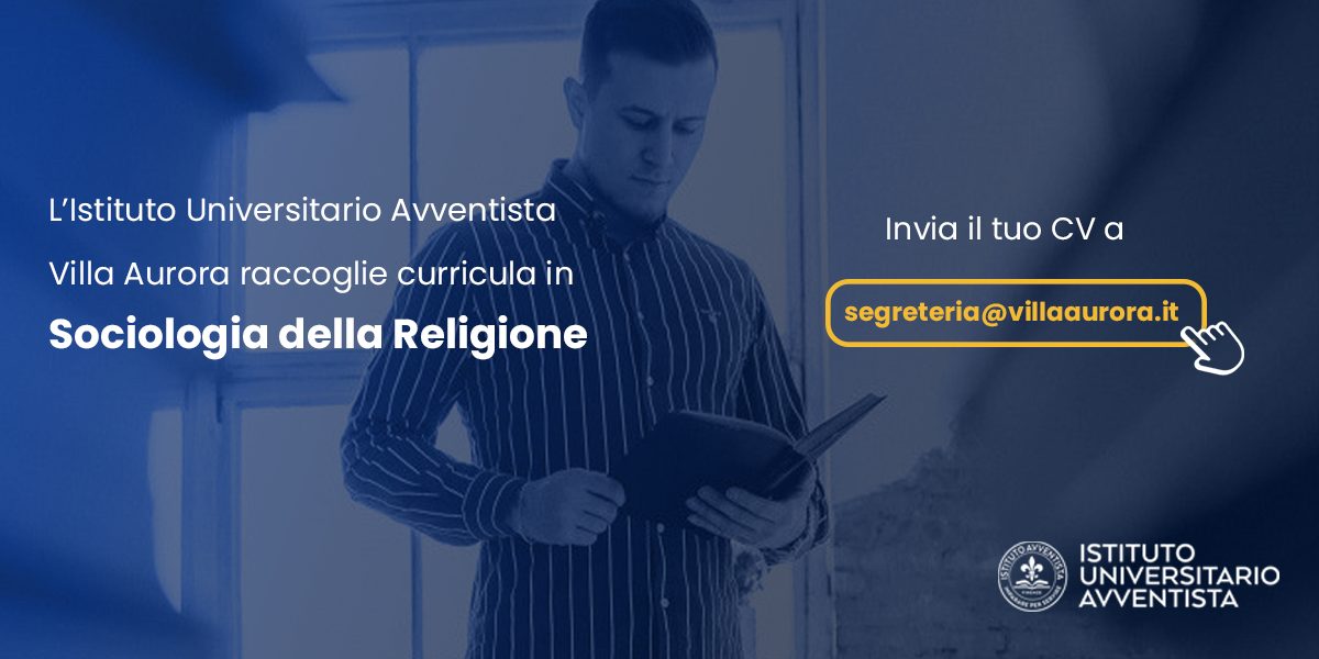 L’Istituto Universitario Avventista “Villa Aurora” sta raccogliendo curricula di persone con formazione in Scienze Sociologiche, con un interesse specifico per l’ambito della Sociologia della Religione. Questa iniziativa